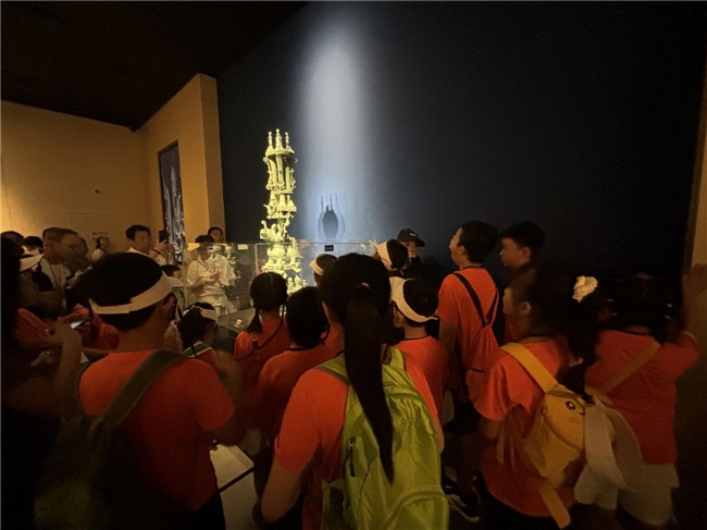 在三星堆博物馆里,在专业讲解员的带领下,青少年们近距离观摩了神秘的三星堆遗址出土文物,包括引人入胜的青铜神树、铜像阵以及神秘的金面具等。让大家直观地感受远古蜀文化的独特魅力,增强了他们对历史文化遗产的保护意识。