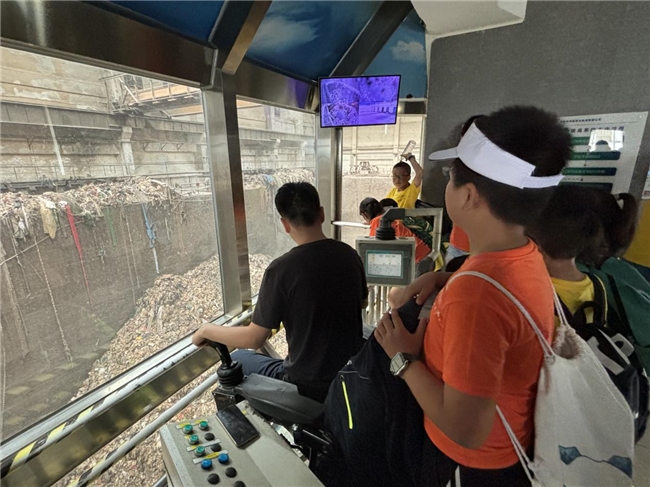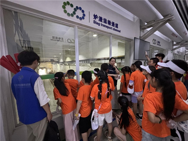 随后,青少年们走进了成都市祥福生活垃圾焚烧发电厂科普基地。在基地讲解员的带领下,青少年们近距离观察了垃圾处理和能源再生的完整流程,涵盖了垃圾接收、分类处理、焚烧炉的运作以及废气废水的处理等关键环节。