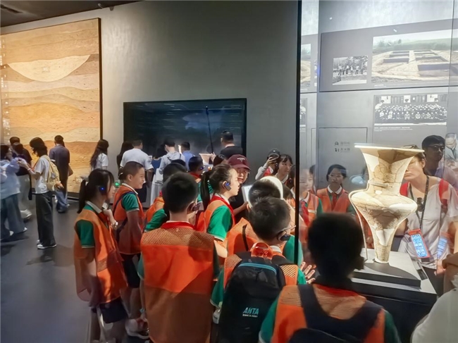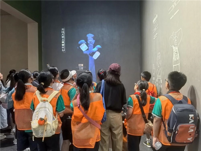 在参观过程中,研学导师针对青少年的认知特点,重点讲解了三星堆文物的历史价值与艺术特色。从青铜器的铸造工艺到古蜀人的信仰体系,从文字符号到祭祀文化,导师用生动易懂的语言为同学们揭开古蜀文明的神秘面纱。同学们积极提问,与导师频繁互动,现场学习氛围热烈。
