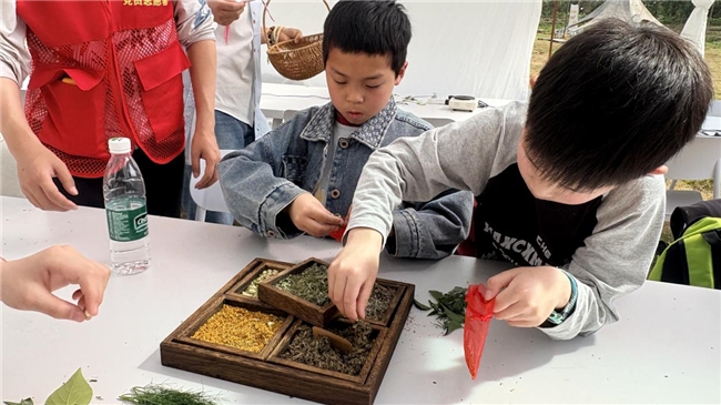 在“手作香囊”环节,青少年利用天然香料,独立完成香囊制作。从填充内胆到封口装饰,孩子们在实践中锻炼动手能力,将传统手工艺与现代科学认知相结合,切身体会中医药文化的独特魅力。